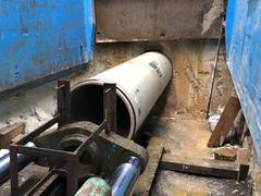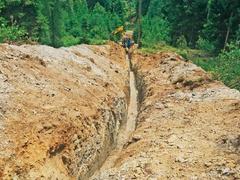 Installation of a sewer pipe on a steep slope